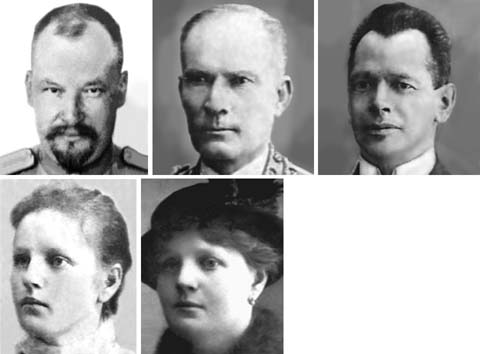 Рис. 9. Фотоснимки доктора Е.С. Боткина (поз.1), лакея А.Е. Труппа (поз.2), повара И.М. Харитонова (поз.3) и горничной А.С. Демидовой (поз. 4 и 5)